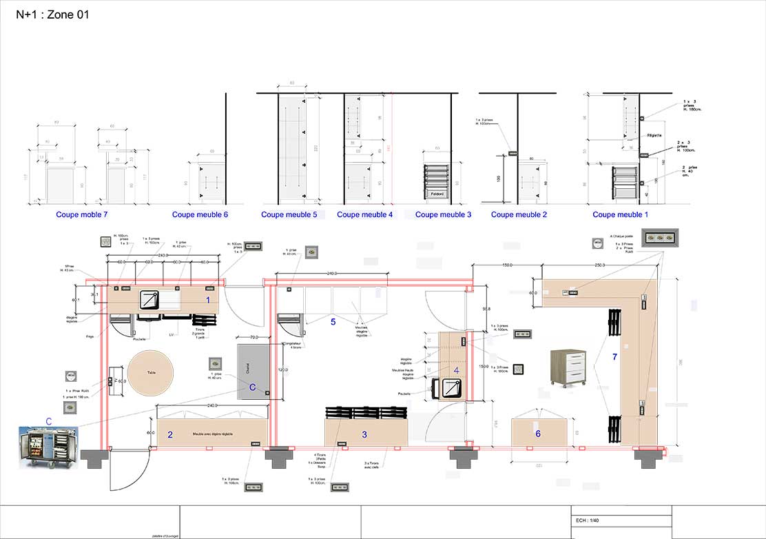 Plans d’ensemble, éclaté 3d, plans de fabrication, plans de détail, plans de miroiterie, plans de serrurerie, feuilles de débit, nomenclatures.